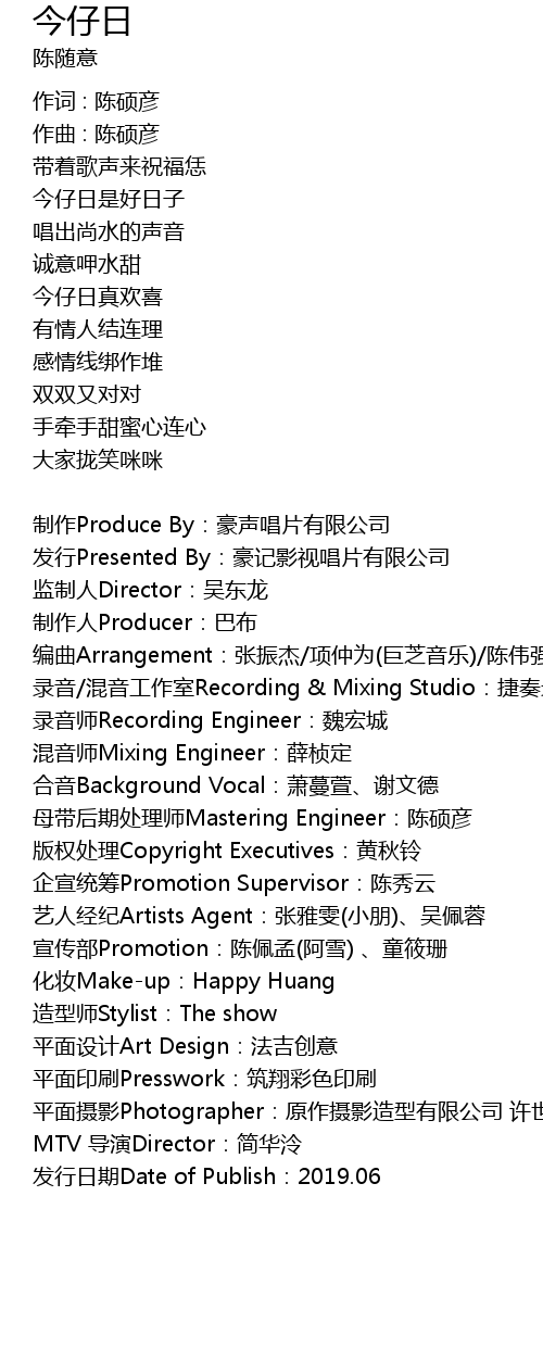 | 作词 : 陈硕彦 | |