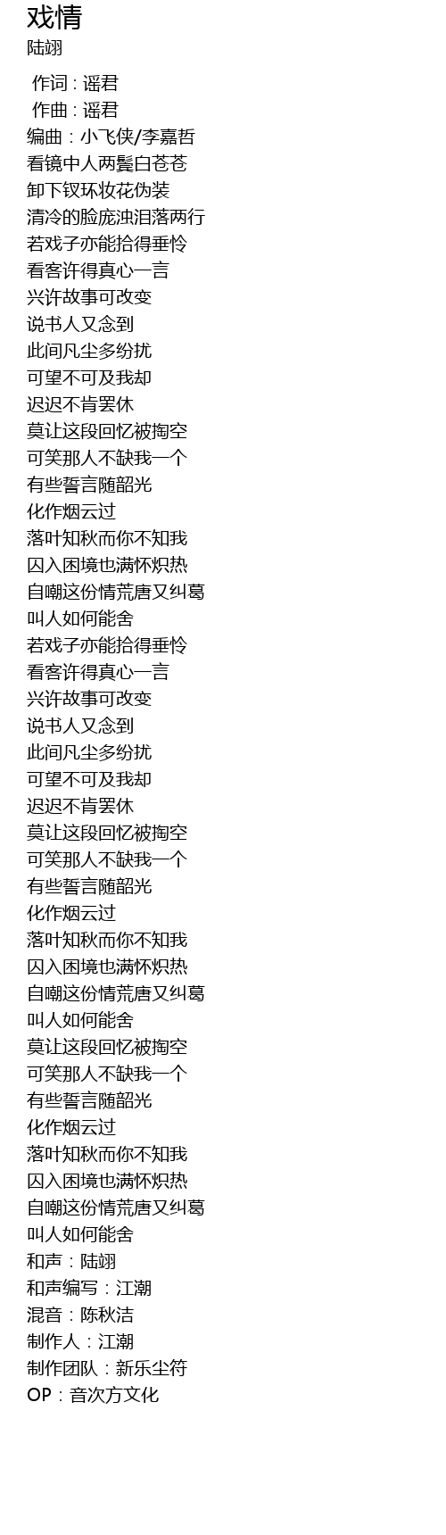 | [00:32.94] | 若戏子亦能拾得垂怜 |