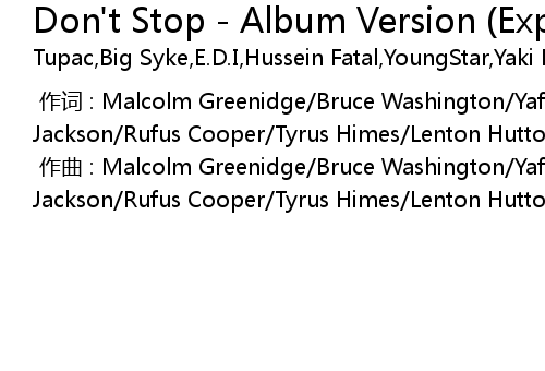 | Song | Don't Stop - Album Version (Explicit) |