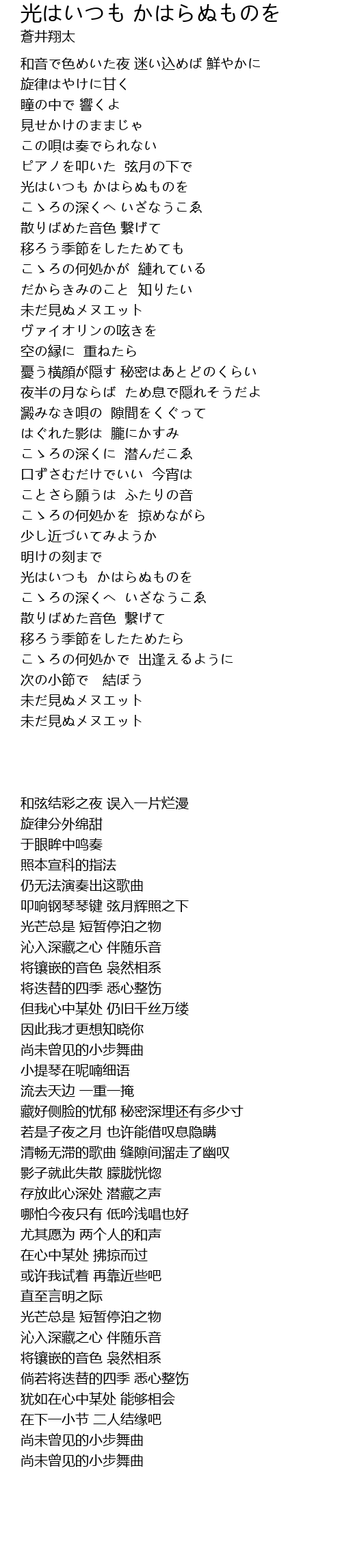 | [03:14.51] | こゝろの何処かで 出逢えるように |