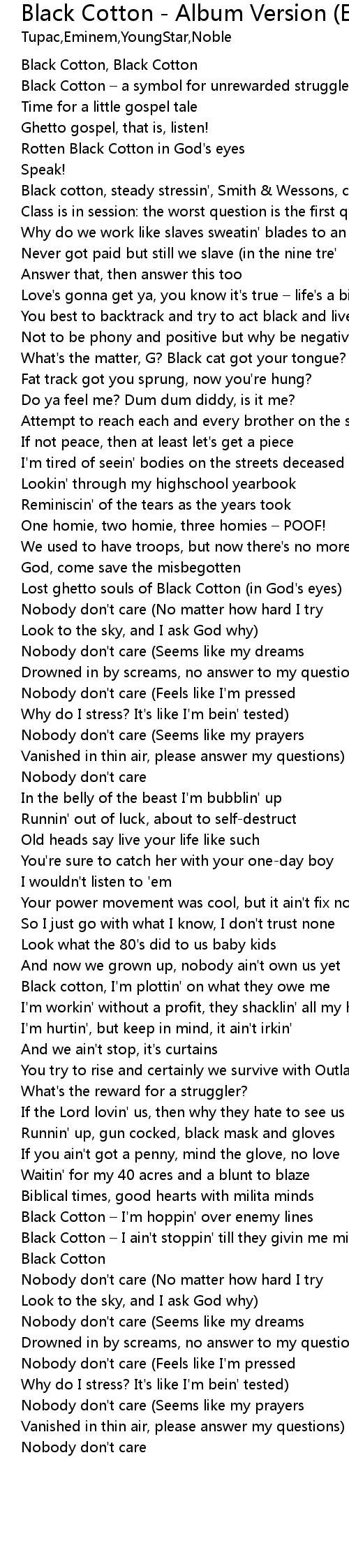 | [01:46.723] | Lost ghetto souls of Black Cotton in God' s eyes |