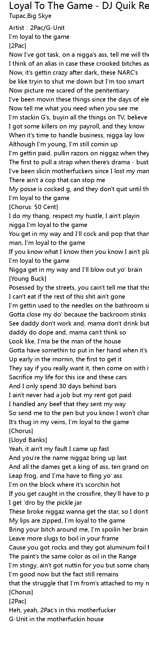| nigga I'm loyal to the game | |