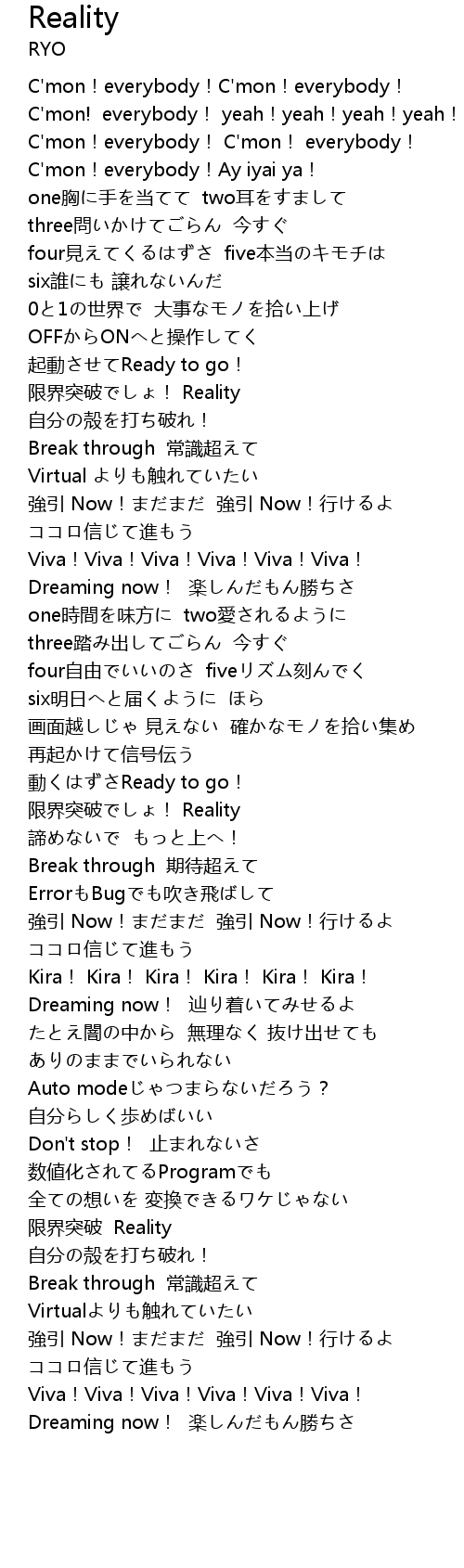 | [00:58.77] | xiàn jiè tū pò! Reality |
