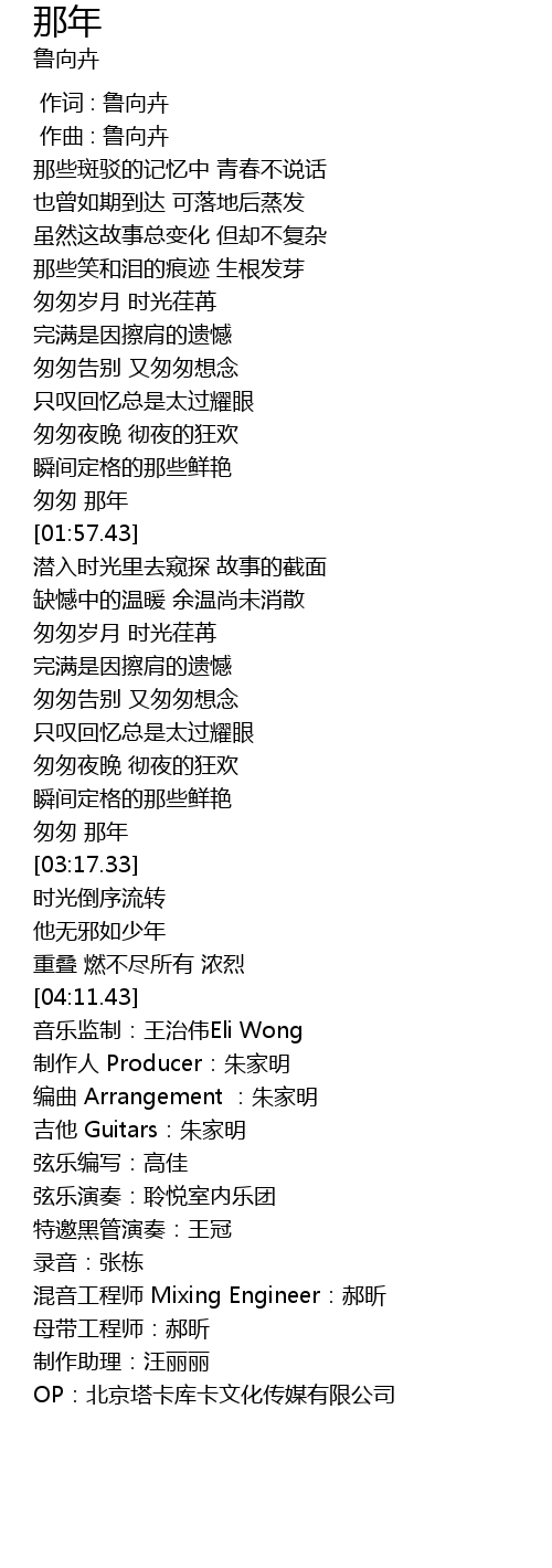 | [00:00.00] | 作词 : 鲁向卉 |
