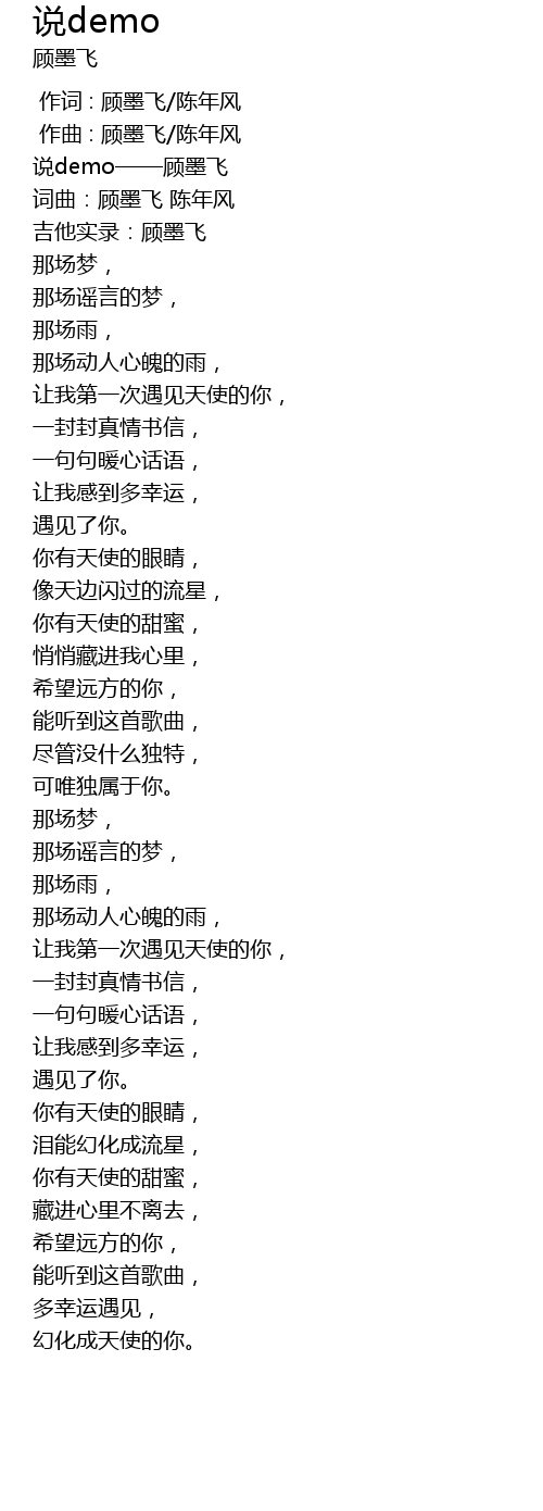 | [00:04.900] | 词曲:顾墨飞 陈年风 |