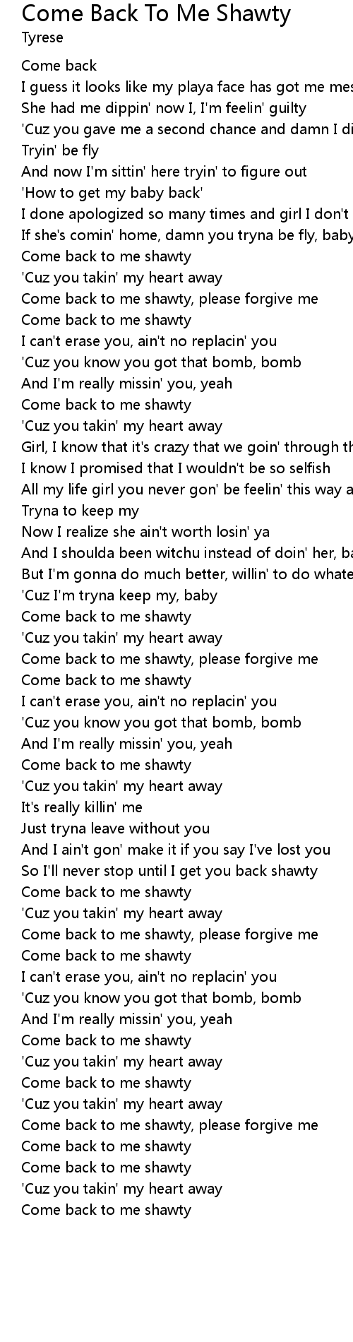 | Come back to me shawty |