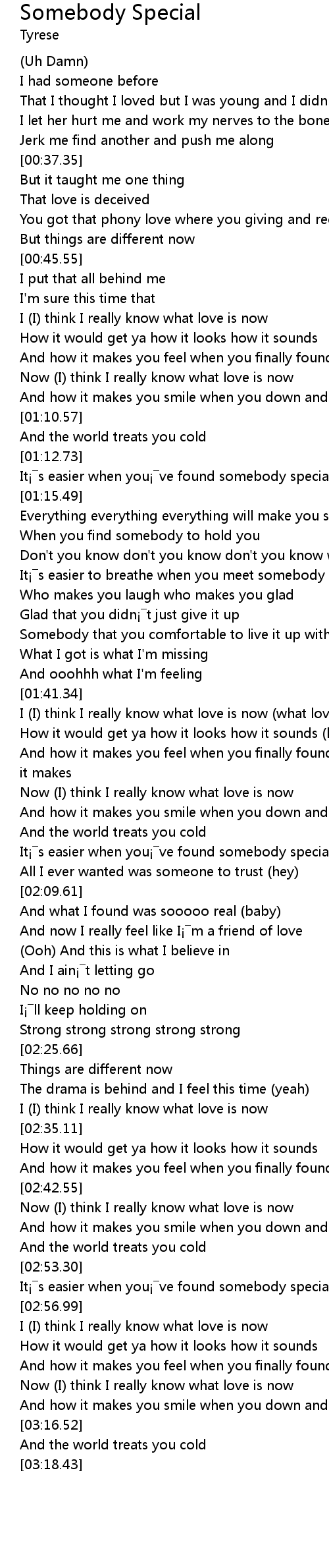 | [00:58.47] | And how it makes you feel when you finally found somebody special |