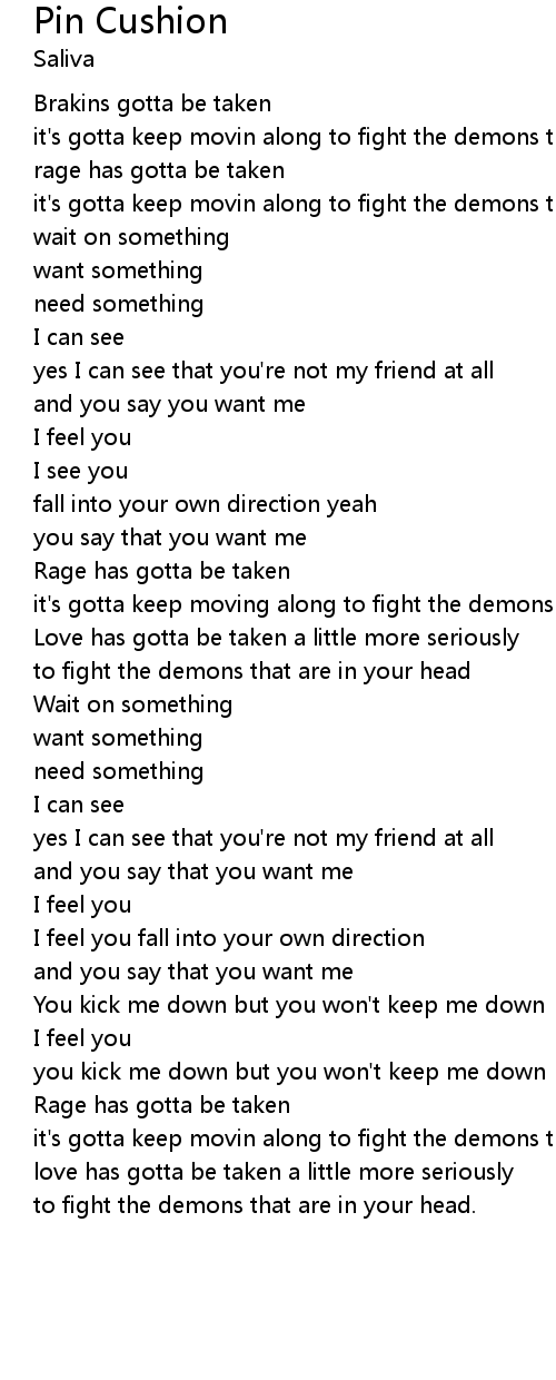 | it's gotta keep movin along to fight the demons that are in my head | |