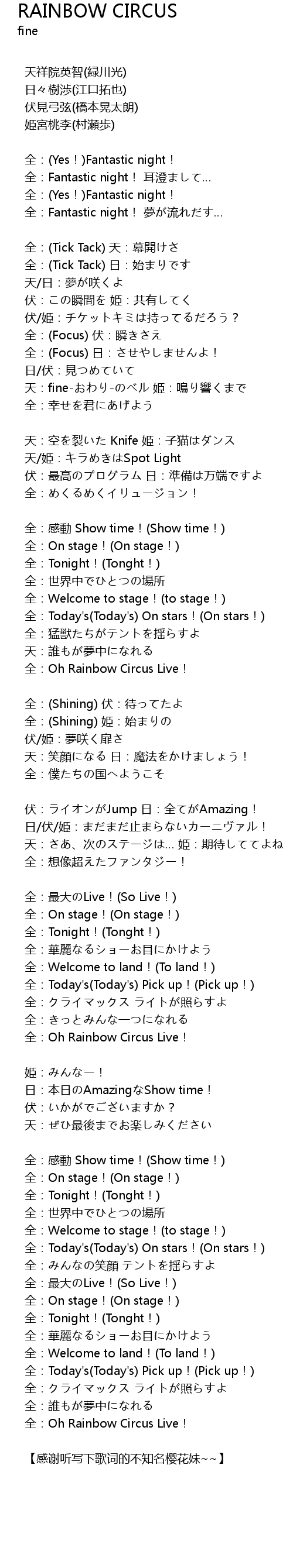 | Song | RAINBOW CIRCUS |
