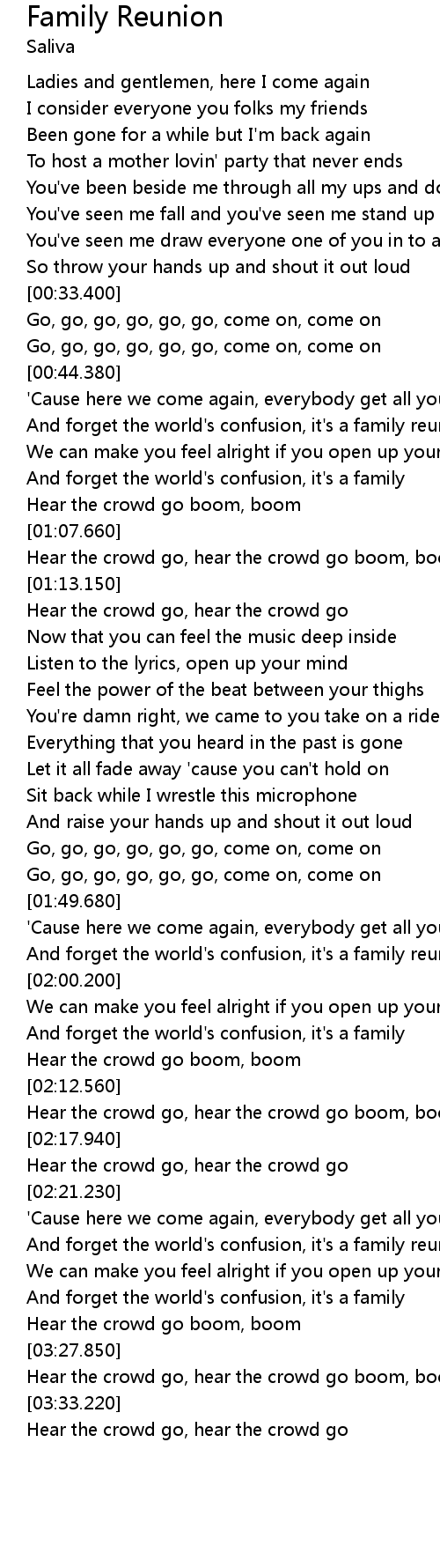 And forget the world's confusion, it's a family reunion |