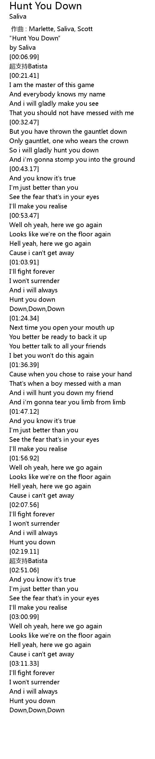 | [03:19.57] | Hunt you down |