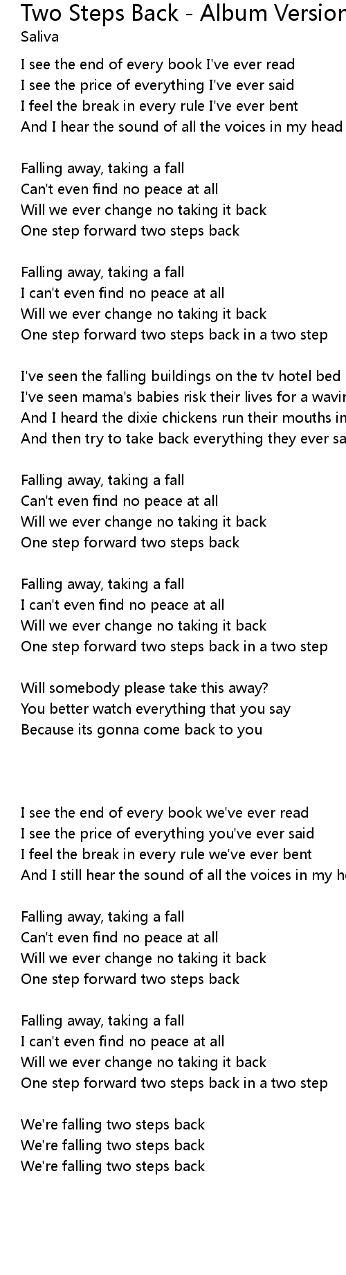 One step forward two steps back |