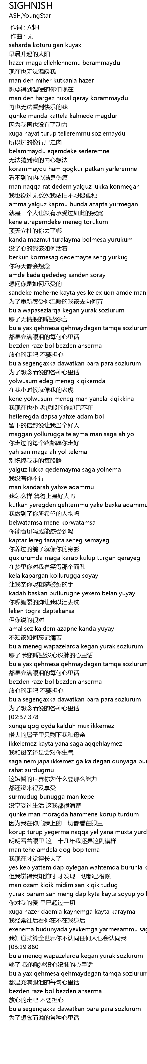 | [00:00.000] | 作词 : A$H |