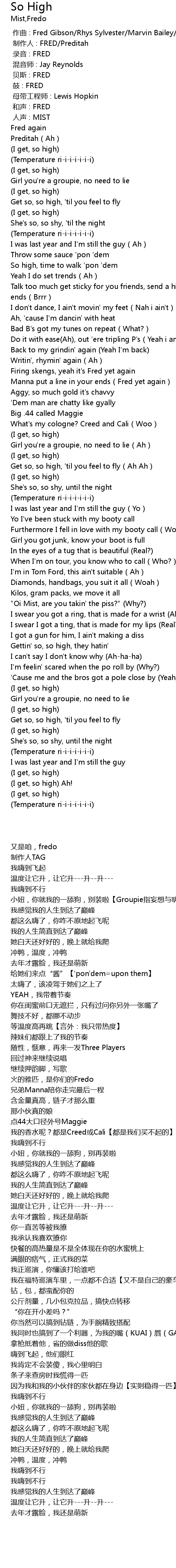 | [01:55.686] | Gettin' so, so high, they hatin' |