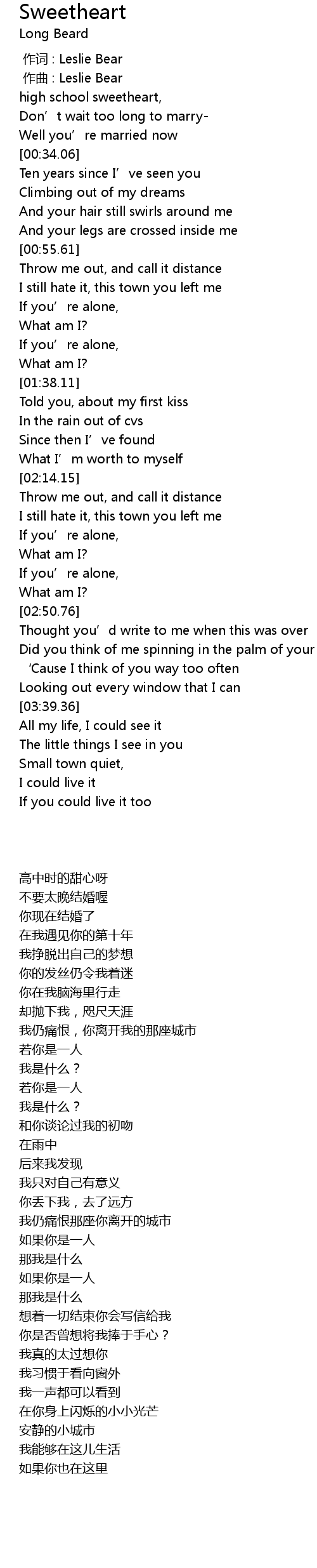 | [00:00.00] | 作词 : Leslie Bear |