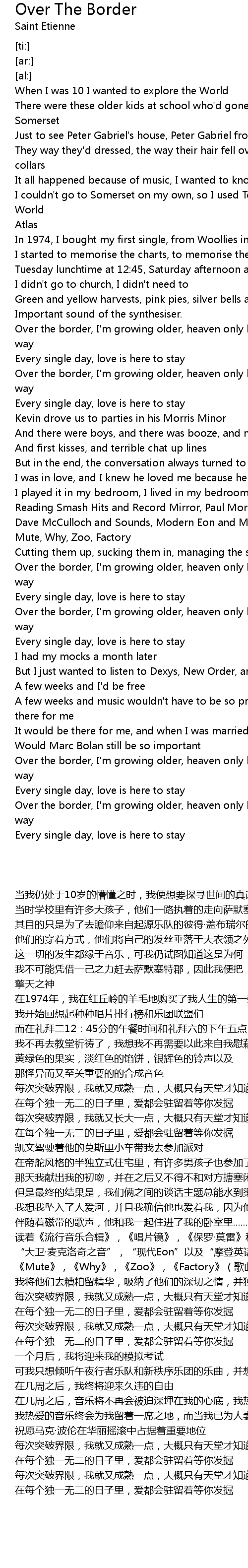 Over the border, I'm growing older, heaven only knows what's on it's way |