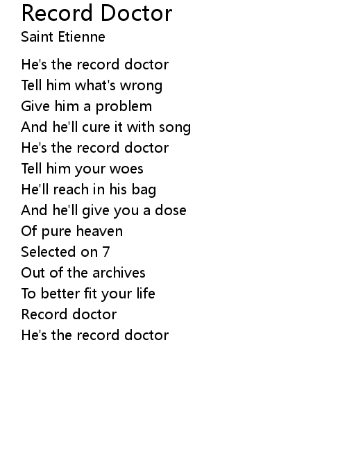 | Song | Record Doctor |