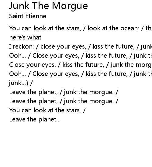 | Ooh... / Close your eyes, / kiss the future, / junk the morgue. / (Junk, junk, junk...) / | |