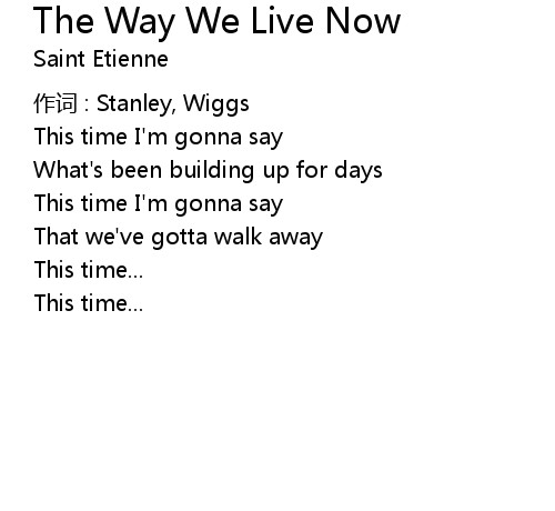 | Song | The Way We Live Now |
