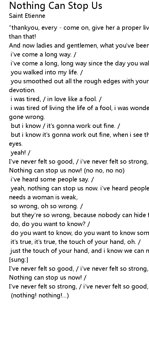 | Nothing can stop us now! no no, no no | |