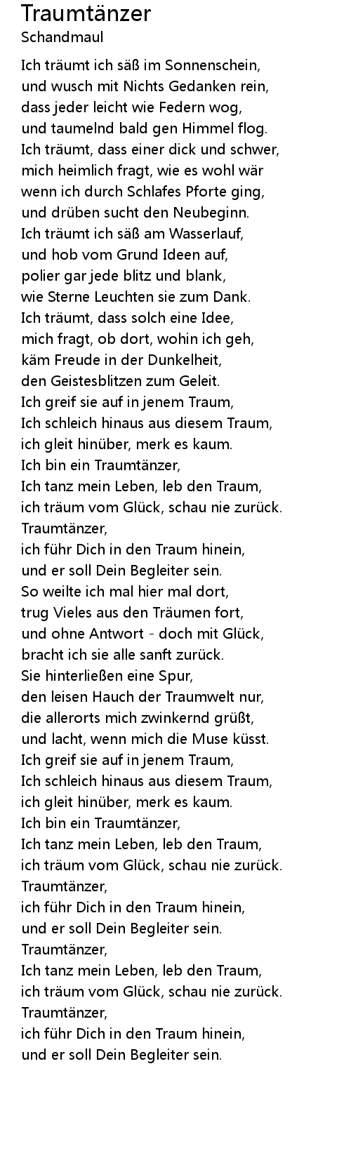 | ich tr um vom Glü ck, schau nie zurü ck. | |