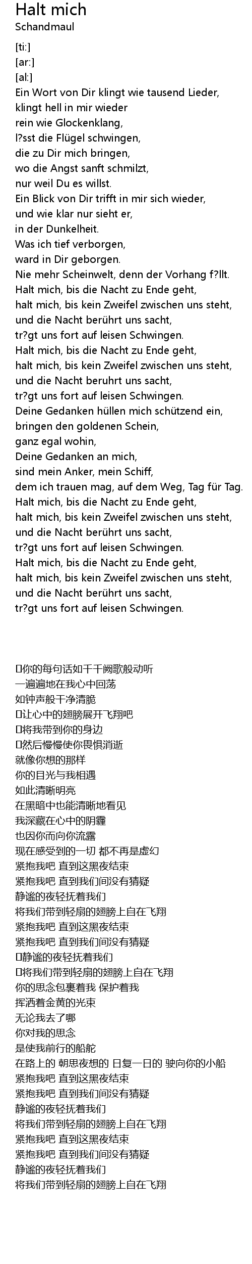 | [02:51.70] | halt mich, bis kein Zweifel zwischen uns steht, |