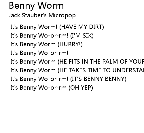 | [00:18.526] | It's Benny Worm (HE TAKES TIME TO UNDERSTAND) |