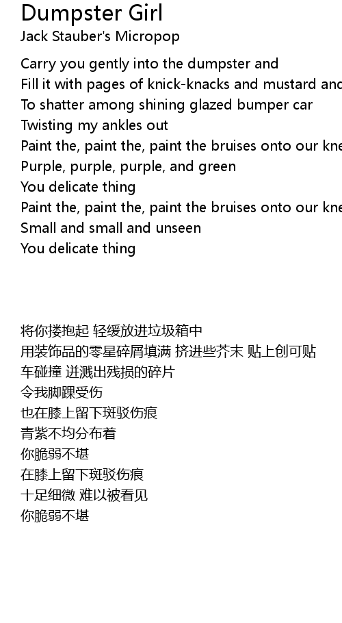 | [00:19.360] | Paint the, paint the, paint the bruises onto our knees |
