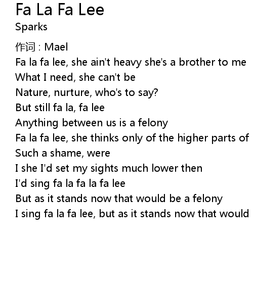 | Fa la fa lee, she ain't heavy she's a brother to me | |