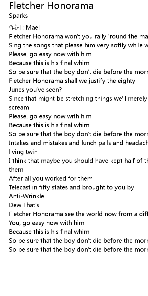 | Fletcher Honorama won' t you rally ' round the man who' s on a limb? | |