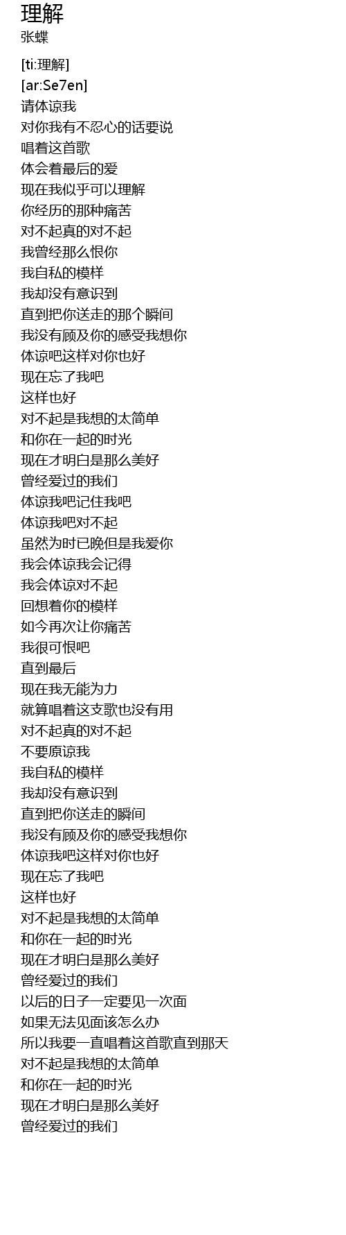 | [01:30.441] | tǐ liàng wǒ ba duì bù qǐ |
