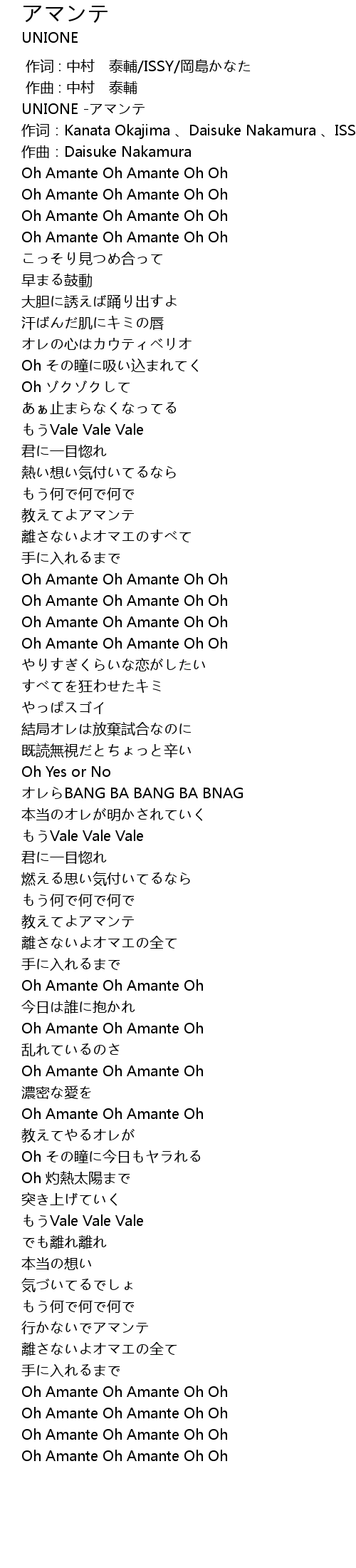 | [01:14.267] | Oh Amante Oh Amante Oh Oh |