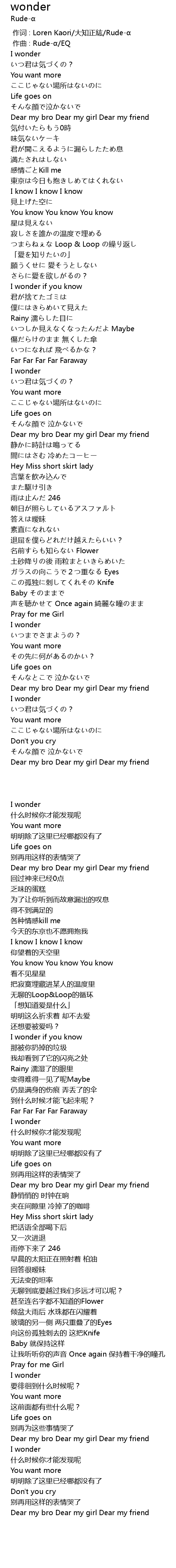| [01:23.34] | Dear my bro Dear my girl Dear my friend |