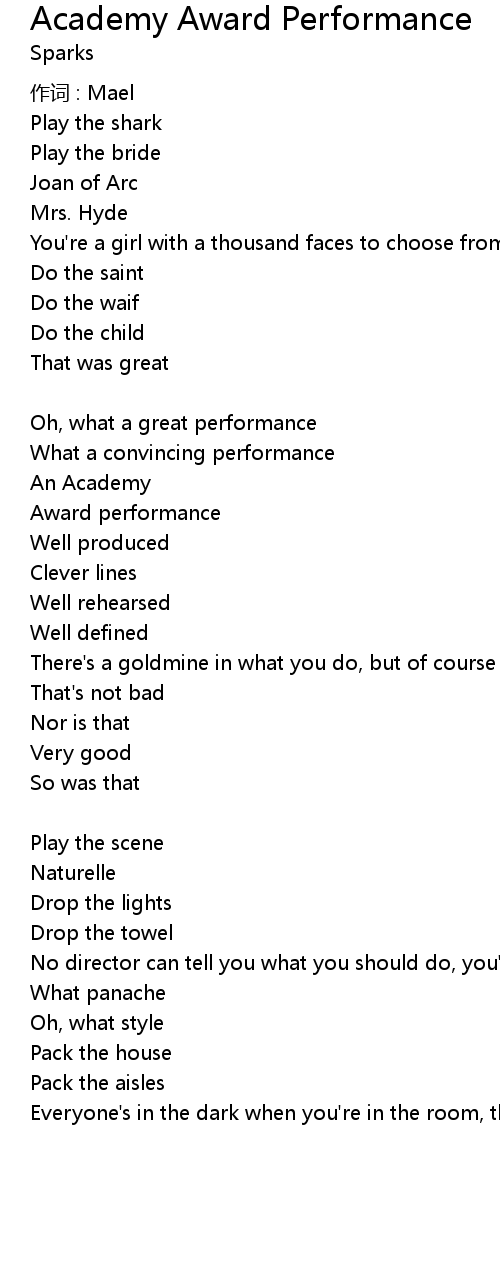 | Great performances only come with some inspiration CHORUS | |
