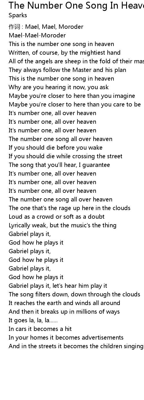 | This is the number one song in heaven | |
