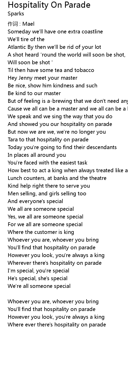 | Song | Hospitality On Parade |