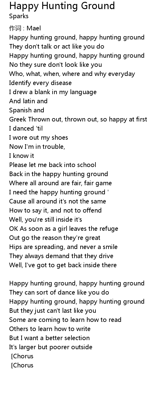 | Happy hunting ground, happy hunting ground | |