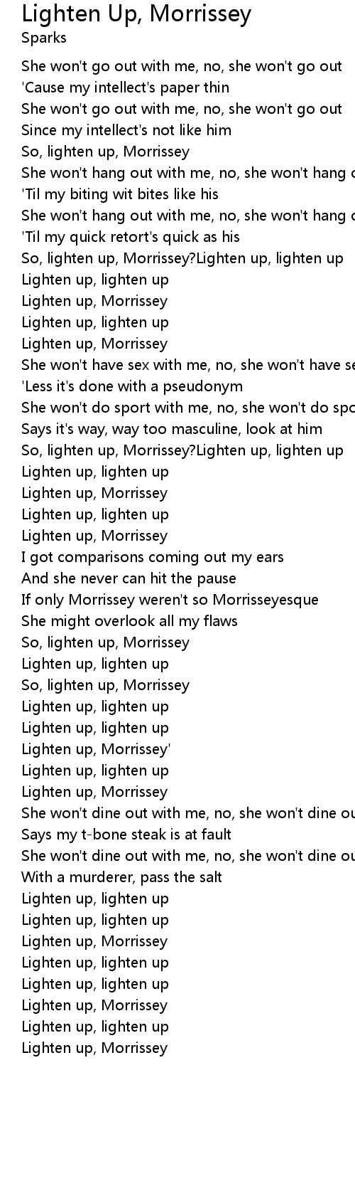 So, lighten up, Morrissey?Lighten up, lighten up |