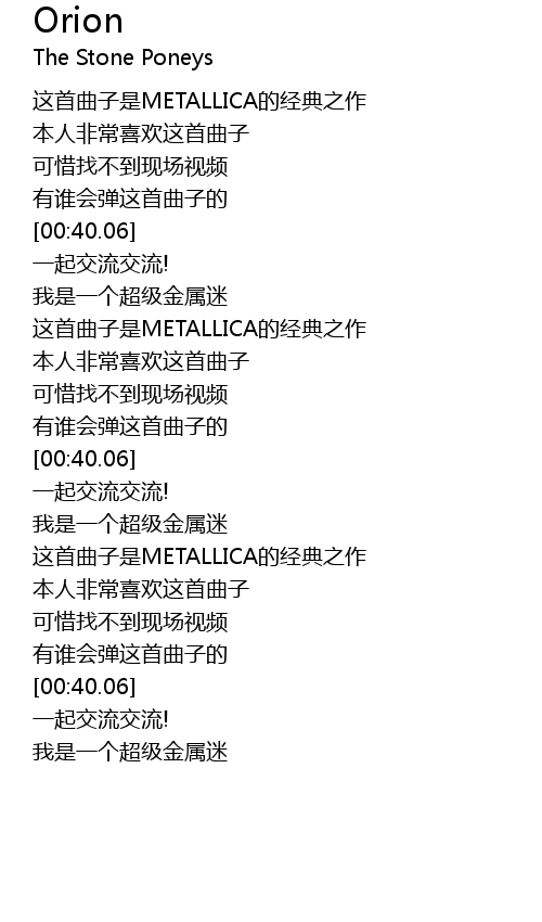 | [00:06.80] | 这首曲子是METALLICA的经典之作 |