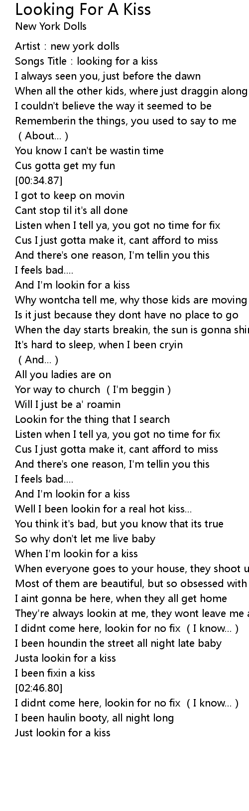 | [01:45.56] | Well I been lookin for a real hot kiss... |