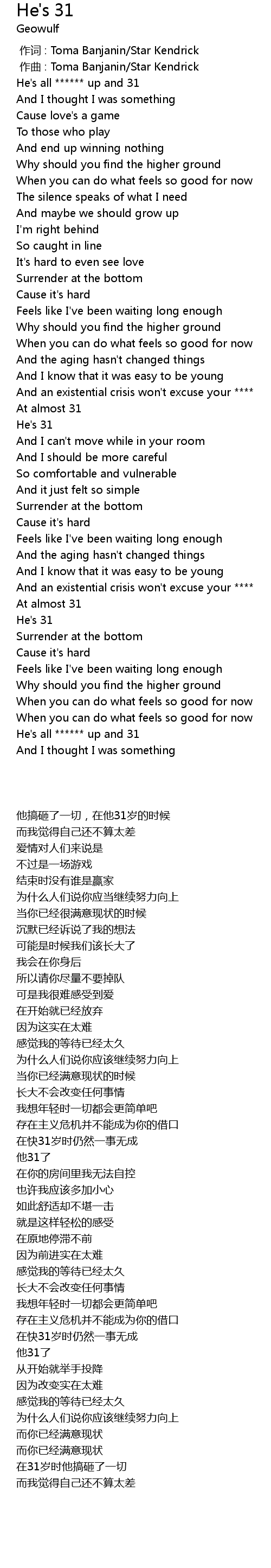 | [00:01.608] | He's all ****** up and 31 |