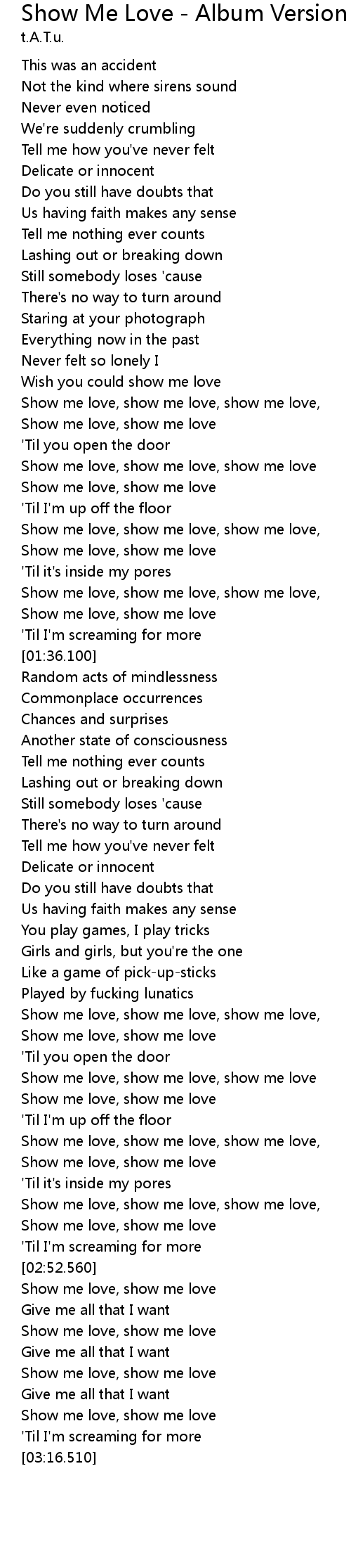 | [02:37.500] | Show me love, show me love, show me love |