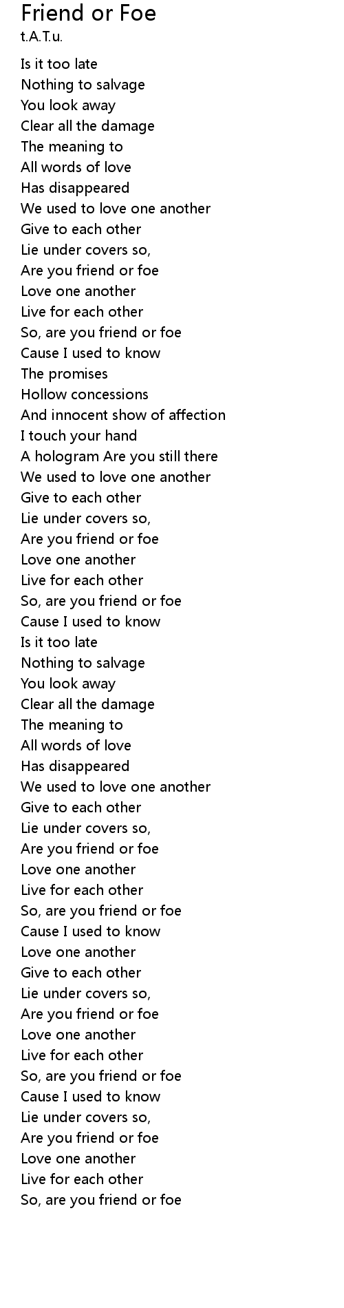Are you friend or foe |