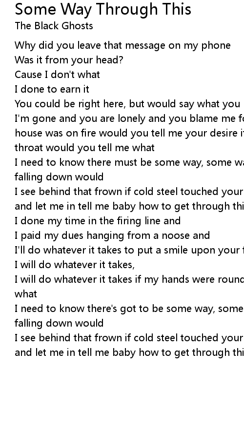 I see behind that frown if cold steel touched your skin would you finally stop and let me in tell me baby how to get through this |