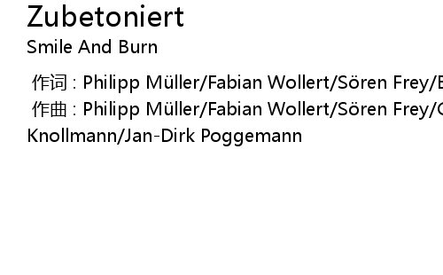 | [00:00.00-1] | zuò qǔ : Philipp Mü ller Fabian Wollert S ren Frey Guido Knollmann JanDirk Poggemann |