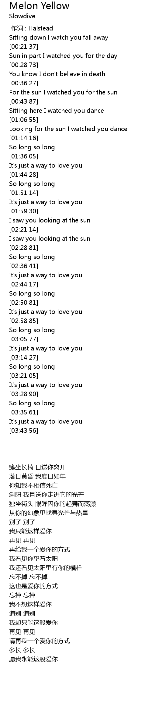 | [00:39.18] | For the sun I watched you for the sun |
