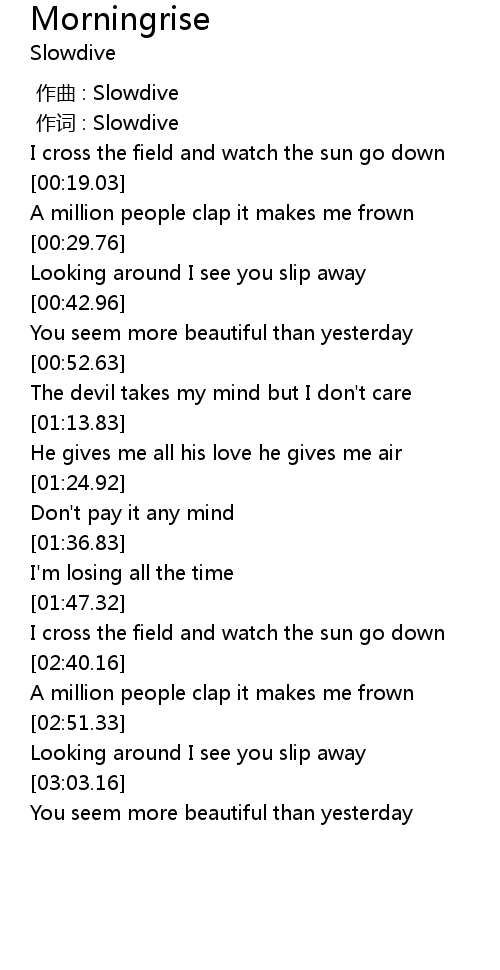 | [01:07.99] | The devil takes my mind but I don' t care |