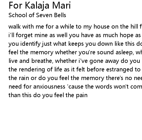 walk with me for a while to my house on the hill forget where your body lies and i'll forget mine as well you have as much hope as you have hopelessness but can you identify just what keeps you down like this do you feel the pain or do you feel the memory whether you're sound asleep, whether i'm wide awake brother, you live and breathe, whether i've gone away do you pass through the world lost in the rendering of life as it felt before estranged to the passing day do you feel the rain or do you feel the memory there's no need to get depressed there's no need for anxiousness 'cause the words won't come easy there's more to your work than this do you feel the pain |