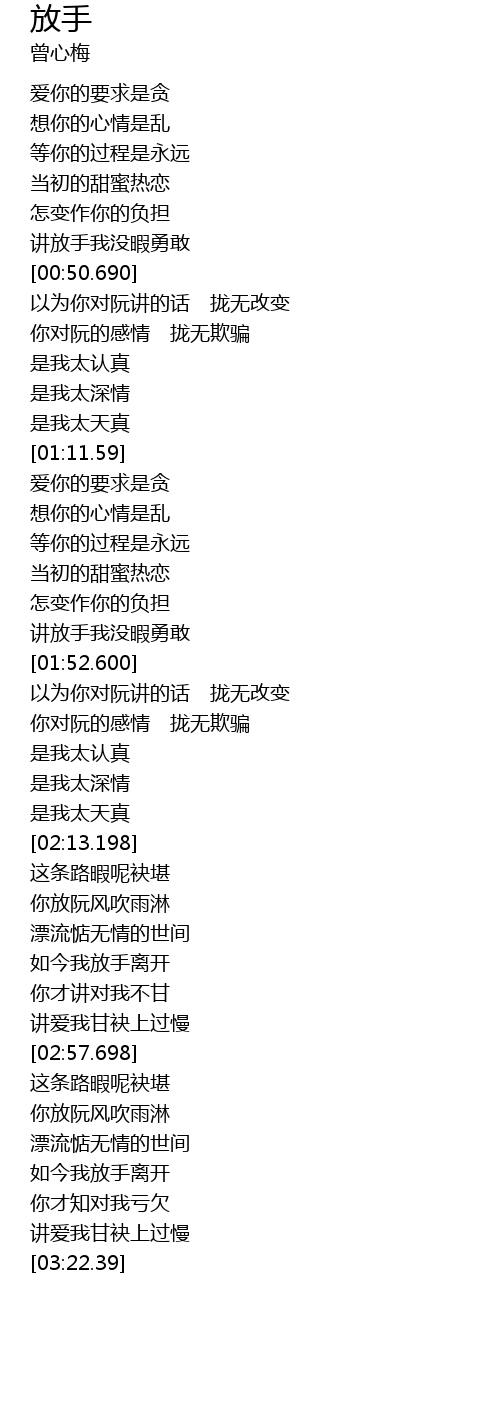 | [00:46.949] | 讲放手我没暇勇敢 |