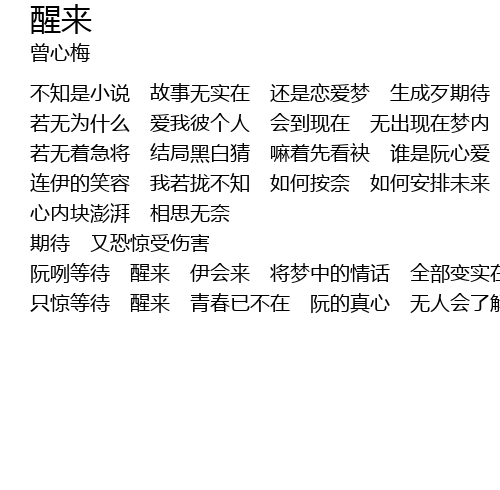 | 阮咧等待 醒来 伊会来 将梦中的情话 全部变实在 | |
